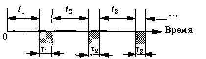 Предположим, что РЭУ эксплуатируется в течение определенного календарного периода. Возникающие при эксплуатации отказы устраняются, и изделие снова используется по назначению. Этот процесс продолжается до окончания рассматриваемого календарного периода. Изобразим процессы функционирования и устранения отказов РЭУ на временной оси (рис.1.10).
