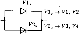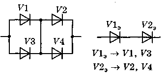 Рассматривая схему соединения диодов (см. рис.4.8), можно увидеть, что две последовательные цепочки соединены между собой параллельно, отсюда и название схемы: последовательно-параллельная.