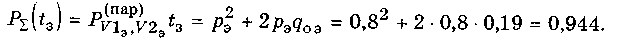 Окончательно вероятность безотказной работы всего резервируемого узла (см.рис.4.8) определим, пользуясь рис.4.9 и формулой (4.2) для случая двух параллельно соединенных элементов.