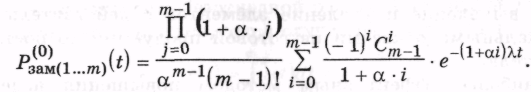 В случае, когда один элемент основной, m - 1 резервные, формула для оценки вероятности безотказной работы узла может быть получена (при одинаковых элементах) [23] в виде