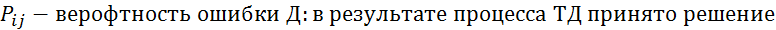 Условная вероятность получения результата ”принято решение, объект диагностирования находится в состоянии Iна самом деле он находится в состоянии j”