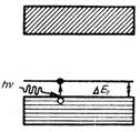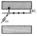 На рис. 3.18, а показана схема образования электрона фотопроводимости и дырки у собственного беспримесного полупроводника. Фотон с энергией