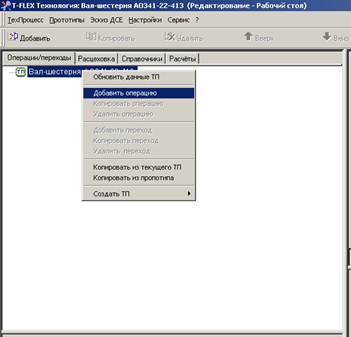 Вернитесь в техпроцесс, открыв закладку «Операции\переходы» (рис.15).