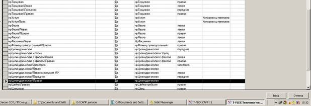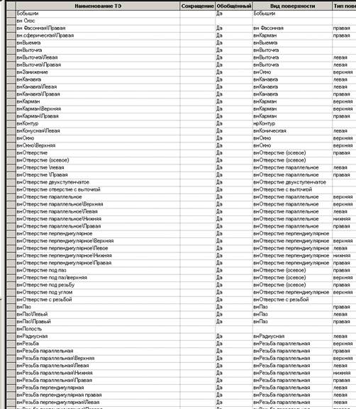 Рисунок 42 – Фрагмент списка обрабатываемых поверхностей – ТЭ
