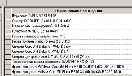 – новое оснащение попадает в строку таблицы «Наименование оснащения».