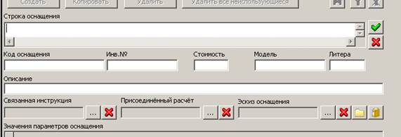 · В поле «Строка оснащения» вводим оснащение, либо печатая с клавиатуры, либо предварительно скопировав строку с оснащением из любого документа – выполненного в WORD или EXCEL. Копирование можно сделать либо сочетанием клавиш «Ctrl» и «C», либо с помощью мыши и функции «Копировать». Вставку скопированного текста можно сделать только сочетанием клавиш «Ctrl» и «V».