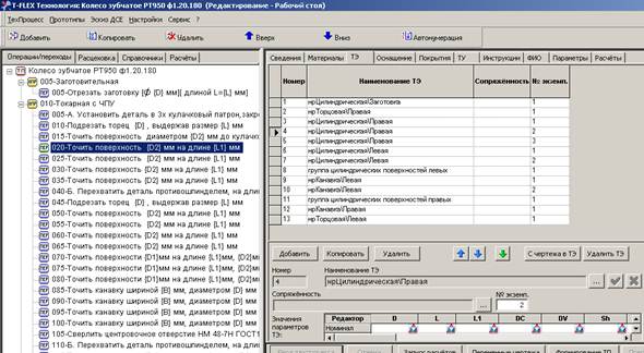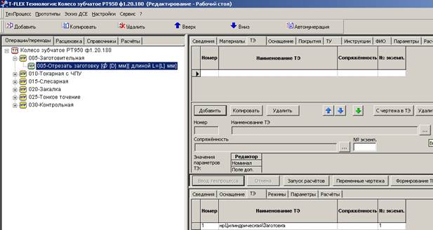 Двойным кликом по полю «Редактор» в верхнем окне техпроцесса откройте таблицу параметров ТЭ (рис.61).