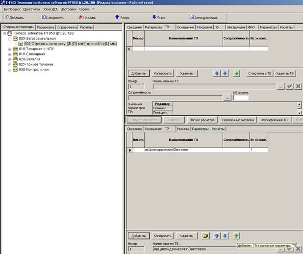 Более быстрый вариант ввода ТЭ в верхнюю закладку техпроцесса – с помощью опции «Добавить ТЭ в основные параметры ТП» - клавиша