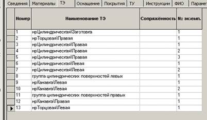 справа от поля «Наименование ТЭ». Порядок действий – такой же, как и при вводе ТЭ в переходы. Этот вариант работы более трудоемкий, но при этом система обеспечивает автоматическое присвоение № экземпляра вновь вводимой ТЭ, что позволяет избежать ошибок. (Достаточно сравнить № экз. ТЭ в закладке перехода и № экз. в верхней закладке техпроцесса).