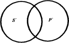 2. В общеотрицательных суждениях — Е (первая гласная латинского слова nego — отрицаю) распределен субъект и предикат. Так в суждении «Ни один человек не является бессмертным» (Ни одно S не суть Р) понятия «люди» и «быть бессмертным» не имеют ни одного общего элемента объемов.