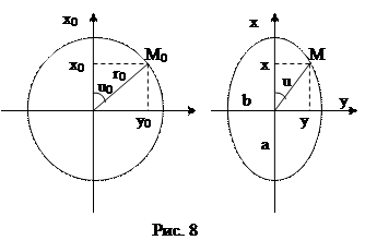 Пусть ось х на земном сфероиде и направление х большой полуоси эллипса искажений на карте совпадают с направление меридиана (см. рис.8). Выберем на окружности произвольную точку М0 обозначим U0, тогда