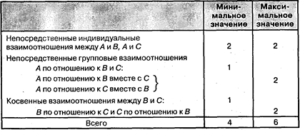 Руководитель А, в подчинении которого находятся двое служащих В и С, может иметь взаимоотношения отдельно с В и отдельно с С, а также с В и С вместе (положение здесь будет различным). Кроме того, он должен принимать во внимание отношения, складывающиеся между B и С (табл. 6.2). Таким образом, при наличии двух подчиненных имеется минимум четыре различных вида взаимоотношений (или максимум – шесть), требующих внимания со стороны А.