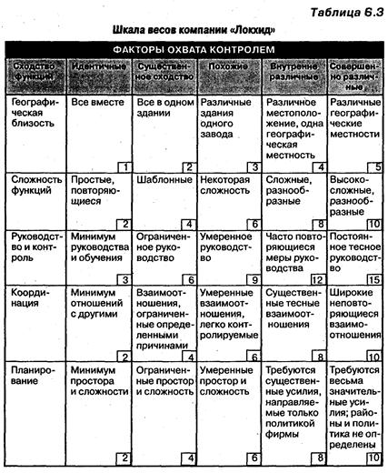 Каждая управленческая позиция оценивается, а взвешенным переменным контроля присваиваются очки. Очки суммируются, результат представляет собой индекс руководства. Общая сумма очков отражает бремя руководителя, связанное с охватом контролем. Чем выше индекс, тем больше бремя и, следовательно, объем контроля. Предлагаемый охват контролем для руководителя среднего уровня представлен в табл.6.4.