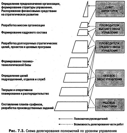 Следует специально выделить вопрос о делегировании полномочий и ответственности в организациях, как о ключевом инструменте эффективного осуществления процессов децентрализации. Направления делегирования полномочий, лежащего в основе децентрализации, показаны на рис. 7.3.