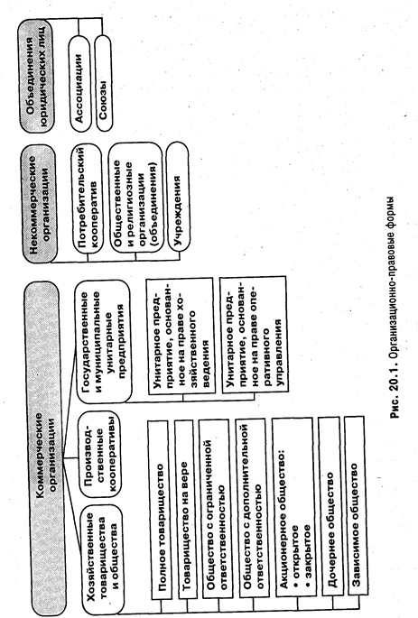 В соответствии с Гражданским кодексом Российской Федерации, действующим с начала 1995 г., юридические лица, являющиеся коммерческими организациями, могут создаваться в различных формах (рис, 20.1).