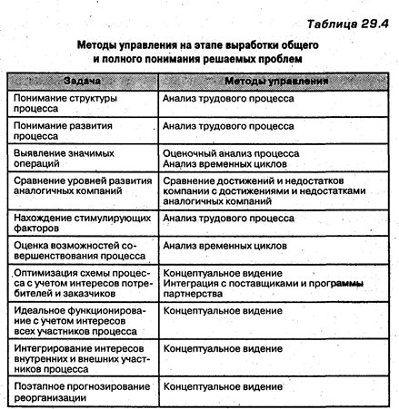 На этом же этапе производится оценка влияния каждой операции на получение конечного результата с выделением операций, имеющих наибольшую ценность. Проводятся сравнения процессов внутри организации и уровня управления ими в аналогичных организациях (табл. 29.4). Необходимо выявить равные по уровню компании, определить показатели их деятельности и основные различия в процессах, выявить возможности использования лучших элементов и приемов. Определяются причины, тормозящие производственный процесс, дисфункции и несоответствия, причины информационного отставания.