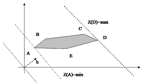 Рис. 1. Многоугольник решений при решении задачи ЛПгеометрическим методом