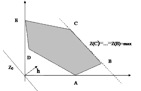 Из рис. 4 видно, что Z0 параллельно отрезку CD, поэтому при нахождении Zmax каждая точка этого отрезка является решением (разные планы производства, дающие одинаковую максимальную прибыль).