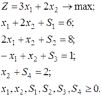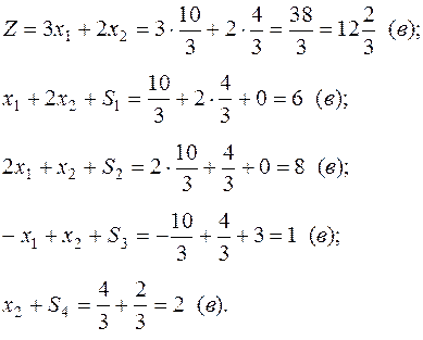 | Б | Z | x1 | x2 | S1 | S2 | S3 | S4 | Реш. |