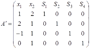 Выпишем расширенную матрицу ограничений (коэффициенты при неизвестных в ограничениях):