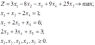 Задача 3. Решить задачу линейного программирования, заданную в каноническом виде и имеющую очевидный начальный базис: