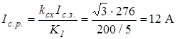 Ток срабатывания защиты и реле при перегрузке находим по формулам