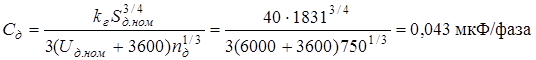 – коэффициент, учитывающий бросок емкостного тока двигателя