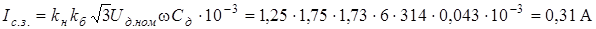 Для решения вопроса о применении защиты двигателя при однофазных замыканиях на землю определяем ток срабатывания защиты по формуле: