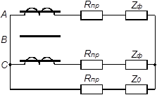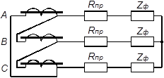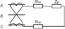 | Схема соединения ТТ и вторичной нагрузки | Вид КЗ | Вторичная нагрузка ТТ |