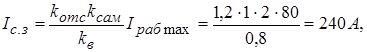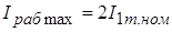 - максимальный рабочий ток, равный суммарному номинальному току двух трансформаторов (один из трансформаторов отключается при КЗ в трансформаторе или на его выводах и срабатывает устройство АВР1);