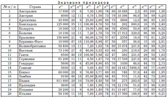 Примечание. Например, для варианта 1 в качестве результативного признака Y берется x(6) – ожидаемая продолжительность жизни мужчины (в годах), а в качестве факторного признака X берется x(1) – численность населения (в тыс. чел.).