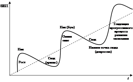 Экономический цикл можно представить в форме графика волны, характеризующей процесс динамики производства валового национального продукта в течение определенного периода (рисунок 25).