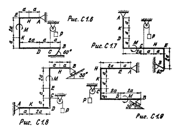 Жесткая рама (рис. С1.0 - С1.9) закреплена в точке А шарнирно, а в точке В прикреплена или к невесомому стержню с шарнирами на концах, или к шарнирной опоре на катках.