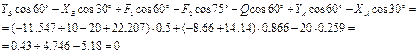 Н, знак минус перед модулем вертикальной составляющей реакции подшипника В указывает на то, что она направлена по вертикали вниз, а не вверх, как мы предположили.