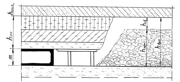 , обрушенные породы полностью заполняют выработанное пространство и яляются искусственной опорой для основной кровли. Величина заполнения выработанного пространства hзап составит hзап=kрhнк, м. Свободное пространство между поверхностью обрушений породы и основной кровлей (hсв), как это видно из расчетной схемы, будет hсв = hвыр - hзап, м, где hвыр – расстояние от почвы пласта до основной кровли. hвыр=m + hнк