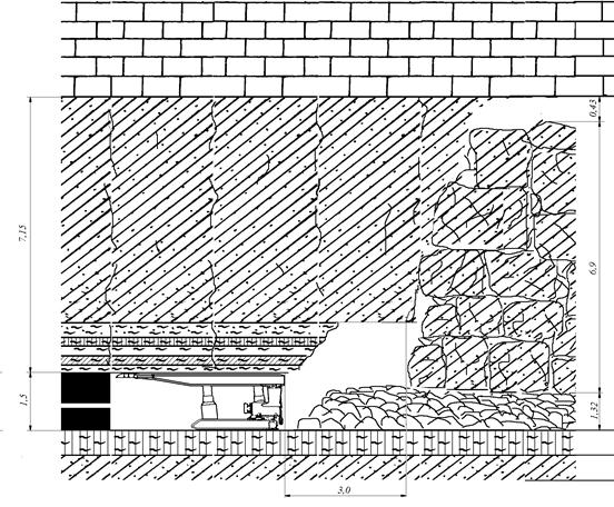 Шестой слой будет обрушаться с некоторым зависанием за крепью. Примем, что этот слой зависает за крепью на расстоянии до трех метров. Обрушившийся шестой слой заполнит выработанное пространство на высоту