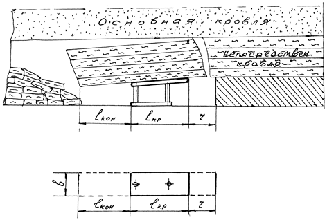В технической характеристике крепи указано сопротивление ее поддерживающей части. Величина сопротивления изменяется в пределах от 300 до 1000 кН/м2. Зная вес непосредственной кровли, можно проверить, выдержит ли секция крепи эту нагрузку. Расчетная схема представлена на рис. 3.2.