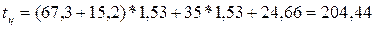Разность между скорректированным и расчетным временем составляет 207-204,44=2,16мин. Эту величину необходимо прибавить к рассчитанному времени цикла. Разбросаем 2,16мин так, чтобы получить целые числа. Тогда
