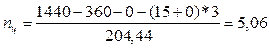 Значения входящих в формулу величин: tсут = 1440мин; tрем = 360мин; tп.в . = 0; tп.з . = 15 мин; tт.п . = 0 n = 3.