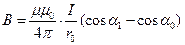 Магнитная индукция поля, создаваемого отрезком провода с током.