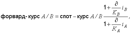где А – котируемая валюта; В – котирующая валюта; iА и iВ – процентные ставки по валютам А и В; д – срок предварительной сделки; КА и КВ – длительность процентного года при расчете процентов по валютам А и В.