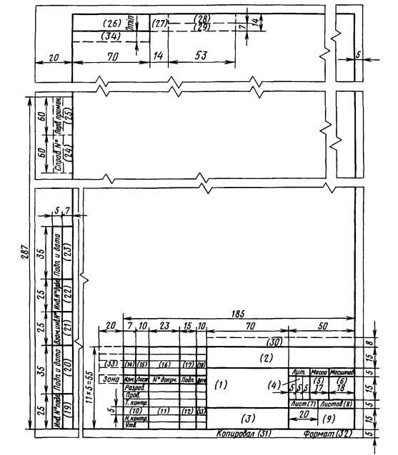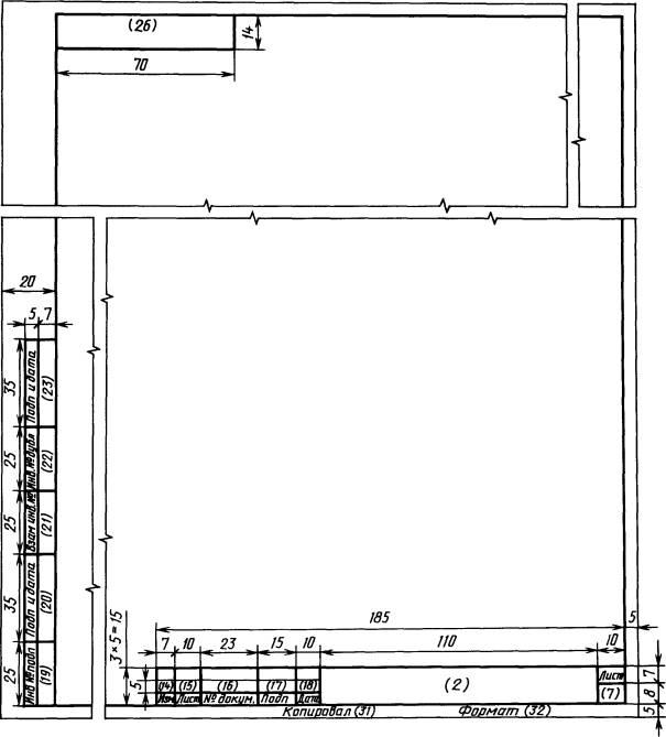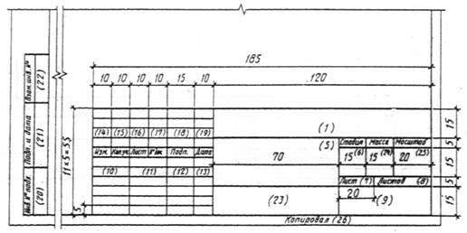 В графах основной надписи и дополнительных графах (номера граф на формах показаны в скобках) указывают: