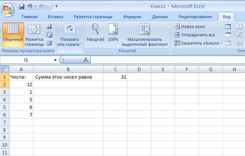 Range("B1") = " Сумма чисел равна" ‘вводим в ячейку В1 поясняющую надпись.