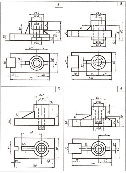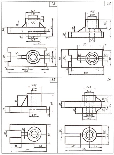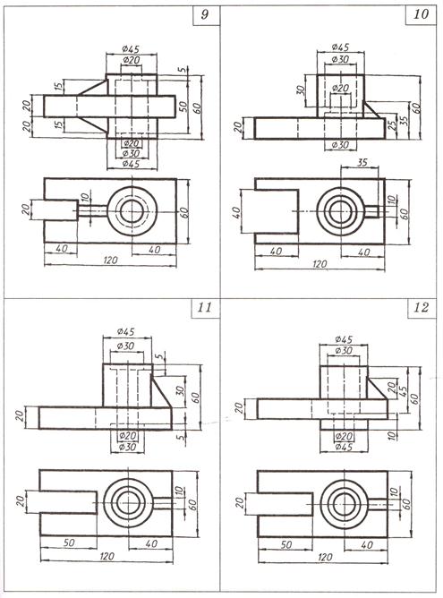 На листе формата А3 необходимо построить по двум заданным видам третий вид детали в тонких линиях. Заменить вид спереди полным фронтальным разрезом, на виде слева выполнить соединение половины вида слева и половины профильного разреза. Выполнить обводку, нанести размеры, обозначить и подписать профильный разрез.