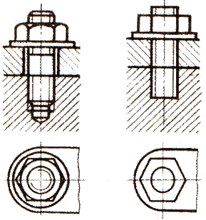 При вычерчивании сборочных чертежей стандартные резьбовые крепежные соединения выполняют упрощенно. Правила вычерчивания упрощенных изображений резьбовых крепежных соединений устанавливает ГОСТ 2.315- 68