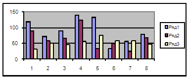 Позволяют представить изменение данных на протяжении отрезка времени. Они очень удобны также для наглядного сравнения разных величин. Временные характеристики в гистограммах располагают по горизонтали, а значения – по вертикали. Это подчеркивает характер изменений во времени.