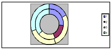 Показывает отношение размеров элементов, образующих ряд данных, к сумме элементов. Такой тип диаграммы целесообразно использовать, когда необходимо подчеркнуть важный элемент.