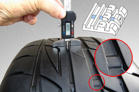 9.10. Опишите методику проверки пригодности шин по износу протектора.