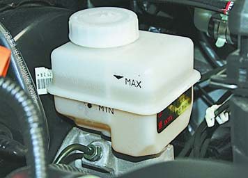 | Рис. 5. Проверка уровня тормозной жидкости в бачке |