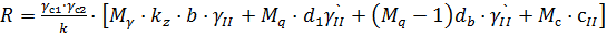 - расчетное значение удельного сцепления грунта, залегающего под подошвой фундамента, кПа (16, табл. Б.1-Б.2);